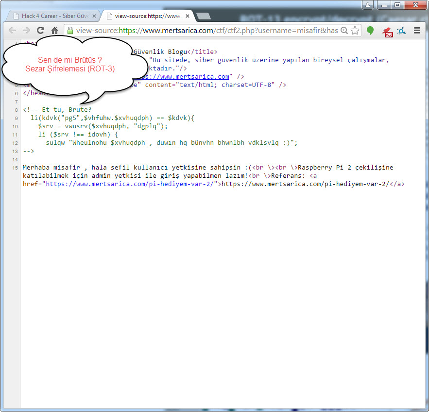 https://www.hack4career.com/ctf/ctf2.php sayfasının kaynak koduna bakılarak Et tu, Brute?