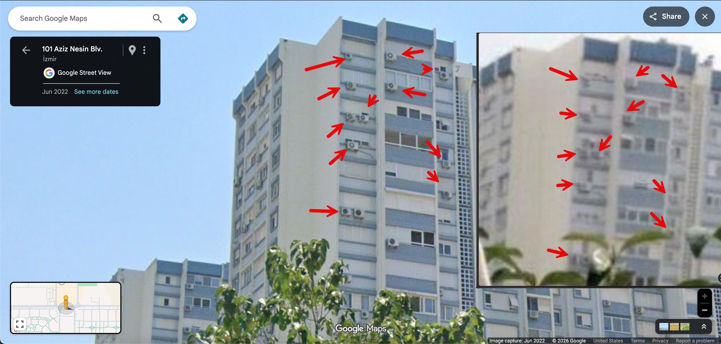Later, I decided to determine approximately where and when Cemal had taken this photo. For this, I utilized the shooting angle and the positioning of air conditioners on the building.