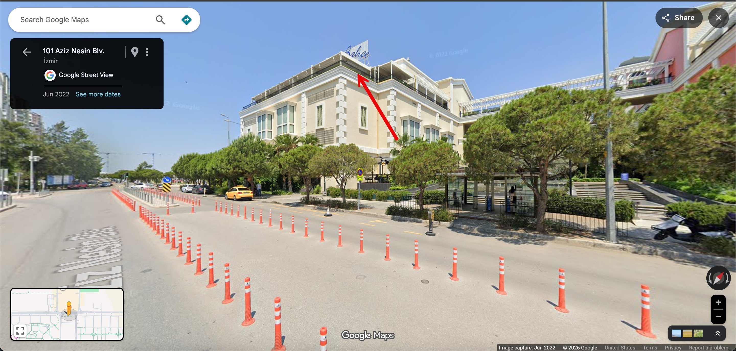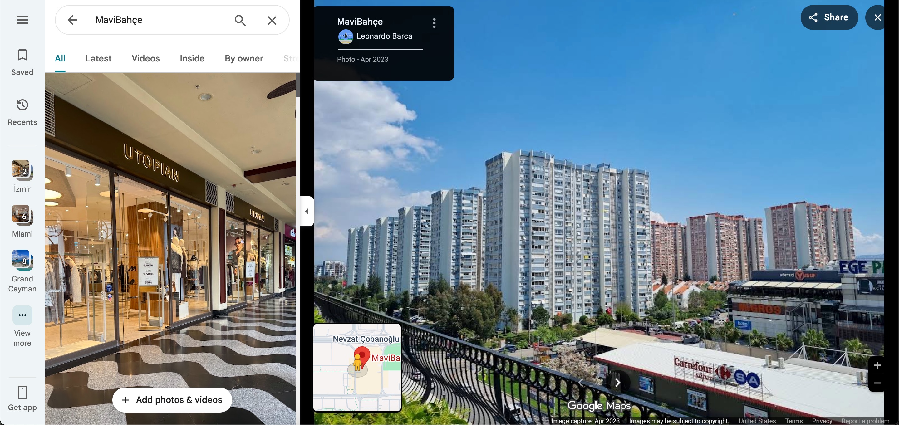 When it came to identifying where the photo was taken from, I noticed the MaviBahçe shopping mall located diagonally across from the building. After reviewing photos in Google Maps comments one by one, I determined that the photo was taken from the upper floor of this mall.