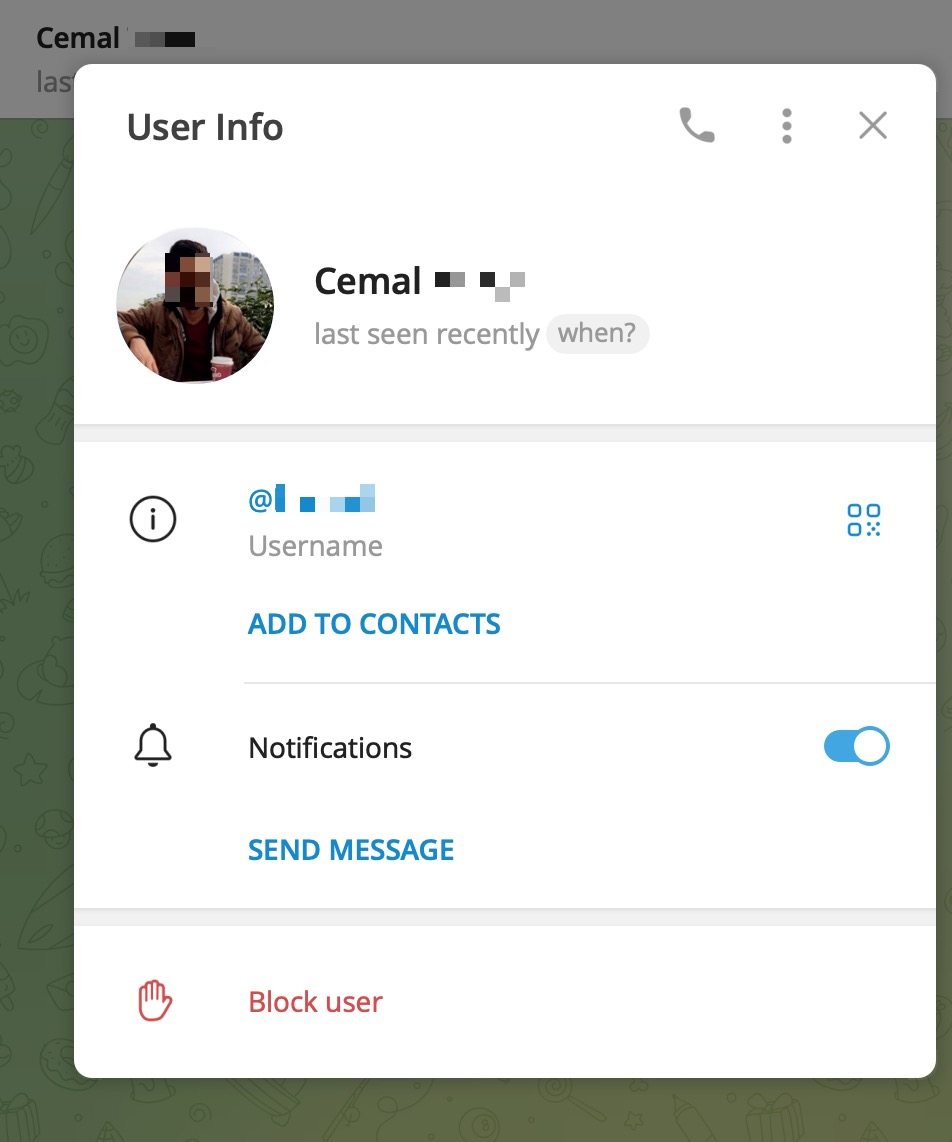 Through the token, I reached Cemal’s Telegram account and encountered his surname information and a possible profile photo. My first reaction was to think that what I was seeing must be fake. Because if I could access this information, law enforcement certainly could — and Cemal would eventually get caught.